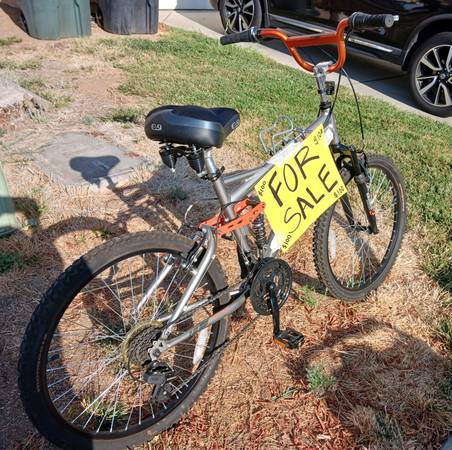 24" Mongoose Bike with 21 Speeds. This bike is custom made with bmx handlebars and a soft gel cushioned seat. Shimano gears and element racing shocks. Metal petals and water bottle holder. Everything works great and this bike looks great, everyone complements it. You won't find anything else like it on the road. Come get it before it's gone.