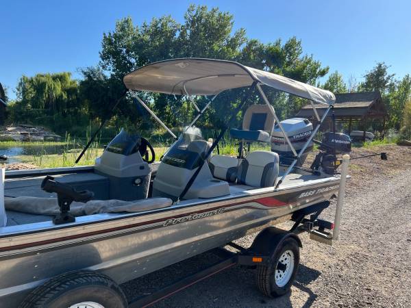 Selling my 1997 Bass Tracker Pro Team 18 with 75 hp main outboard and a 6 hp Mercury kicker. The 6 hp Mercury has never been used so it has 0 hrs on it. The kicker motor is linked to the main motor and both speed and steering can be done from the main seat. The boat comes with a Minnkota trolling motor and a Hummingbird Helix 10 fish finder. I will also include the Norco Genius 3X battery charger and both trolling downriggers. The boat has been great but I no longer need it.