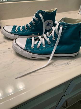 Converse All Star Chuck Taylor’s high top teal color, barely worn! Only $5.00. Size 5 1/2 men’s or 7 1/2 in women’s.