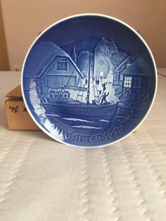 Royal Copenhagen Annual Jule Aften Christmas 1976 commemorative plate. Also a special seal for an Olympic year (Montreal). Mint condition in original box.