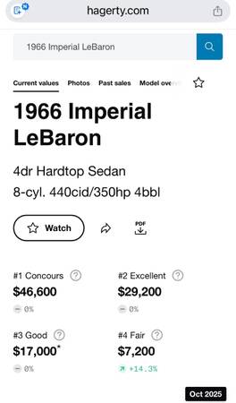 This is a pretty rare 1966 Chrysler Imperial LeBaron 4-Door Hardtop Sedan. Only 1878 were made. This is a true survivor expected will continue to increase in value. The car runs and drives beautifully! Motor and transmission are excellent. Brakes nice and straight. Turns heads everywhere she goes!