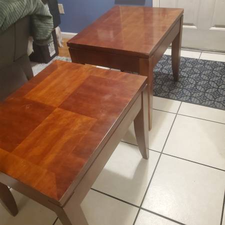 Nice end tables. These end tables can go next to the head of your bed or next to a couch. They have a nice design and are great looking. They are functional and sturdy.
