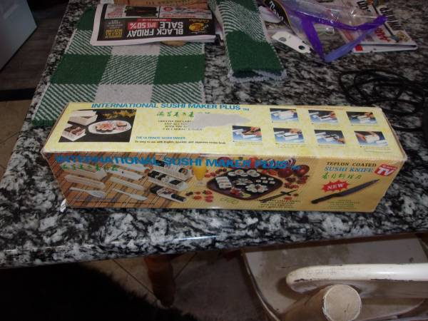The International Sushi Maker Plus, was sold on TV, and is designed to help you make perfect sushi rolls with ease. Lots of fun. Does not look like it was ever opened,
