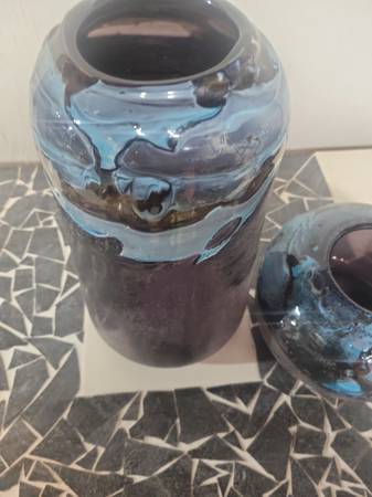 Tall and small blue grotto vases from lazyboy furniture. Asking 35 for the tall and 25 for the small or both for 50.