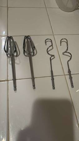Selling Handheld electric mixer in excellent working condition. Features multiple speed settings and a turbo button for extra power. Comes with all attachments shown and a clear storage container. Clean and ready to use for baking and everyday mixing.
