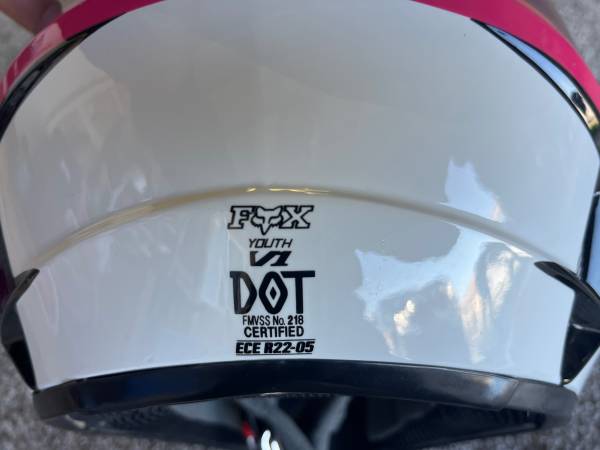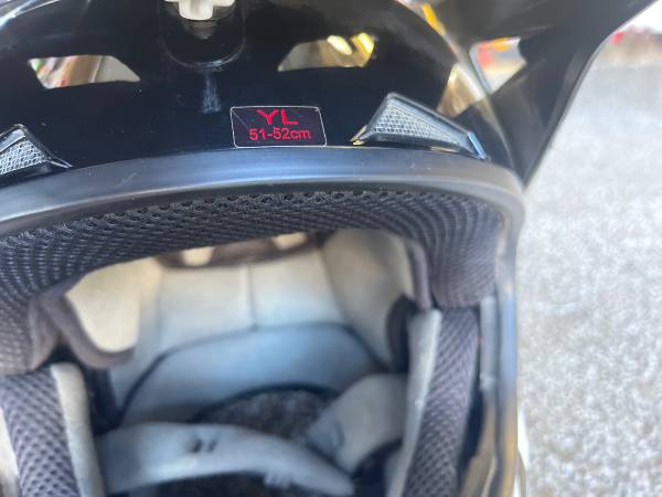 Fox youth V1 helmet. Size is a youth large 51-52 cm. Good condition with a few nicks and scrapes. $80 OBO