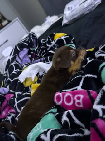 Puppy 9 weeks. First shots & deworming. Flea and tick free. Re homing fee applies.