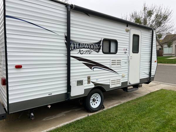 2015 Forrest River Wildwood X-Lite Factory Select T195BH for sale by owner in Good Condition. Can sleep 5. Queen Bed with storage underneath, 2 Bunk Beds and Convertible Dinning table. Roof Resealed, brakes and brake axels replaced in 2023. New Tires (Goodyear Endurance) and 2 new 6 volt batteries purchased 2024. Clean Title. DMV Registered. Asking $9,000 or best offer.